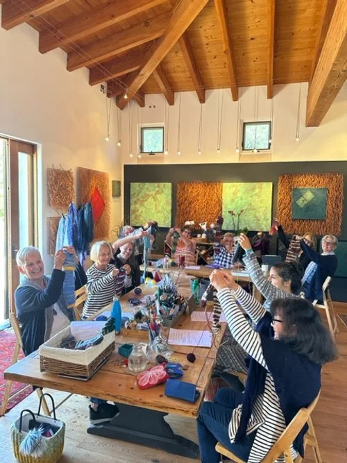 As a studio artist for 40 years and involved with fibers for over 50, I am eager to share my studio with occasional classes and the knitting community. There will be knitting, weaving, and dyeing opportunities….as well as special events showcasing different indy dyers and selected yarns. Fee based private instruction, assistance and finishing is available. Gatherings here to share all things fiber in a cheerful and open studio environment. Welcome!